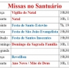 Veja abaixo os horários das Missas, no Santuário, durante o Natal: