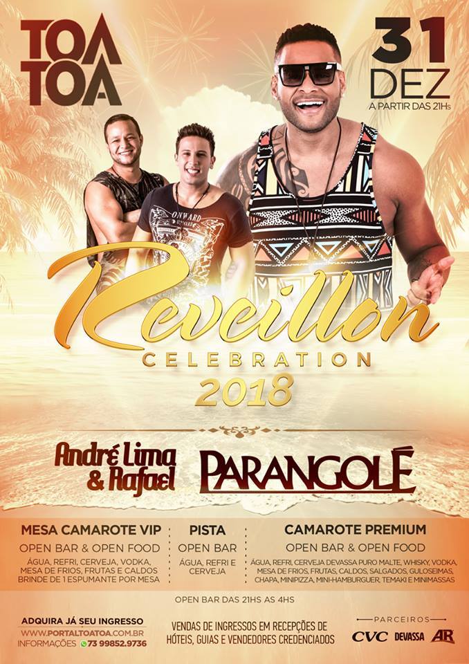 O Réveillon do Complexo de Lazer Tôa Tôa traz em 2017 este ano tem como atrações a Banda Parangolé e a dupla sertaneja André Lima & Rafael. O seu vocalista, Tony Salles promete o agitar até o sol raiar, além do palco principal, o ambiente com DJ e boate estará à espera dos convidados.